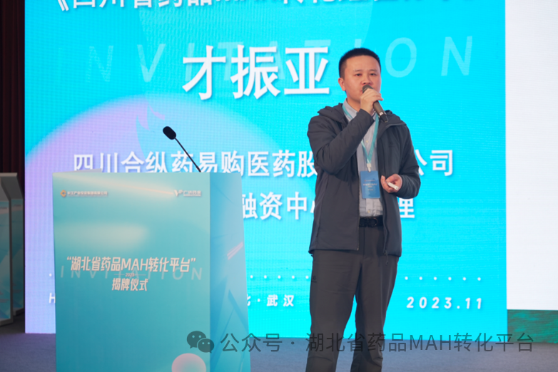 四川合纵药易购医药股份有限公司副总裁兼投融资中心总经理才振亚围绕“以协会及产业公司为依托、以神鸟MAH超级转化平台为抓手、以资本为纽带和驱动”三个方面介绍西部MAH超级转化平台经验,提出了独到新颖的观点。