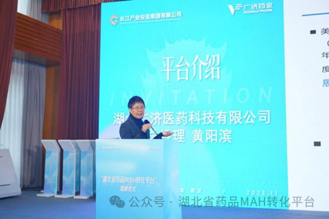 湖北广济医药科技有限公司总经理黄阳滨紧紧围绕以“用”为引导、以“需”为牵引的思路介绍“湖北省药品MAH转化平台”。