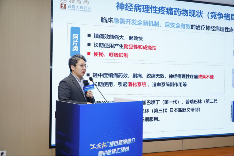 “项目组以Sigma-1受体为药效靶点,结合AI辅助药物设计与合成,通过临床研究系统评价,研究出具有强效镇痛效果的潜力非阿片药物,并确立其安全性和有效性。”宜昌人福药业有限责任公司创新研究中心副主任周皓系统阐述其技术突破、发展计划和市场前景。