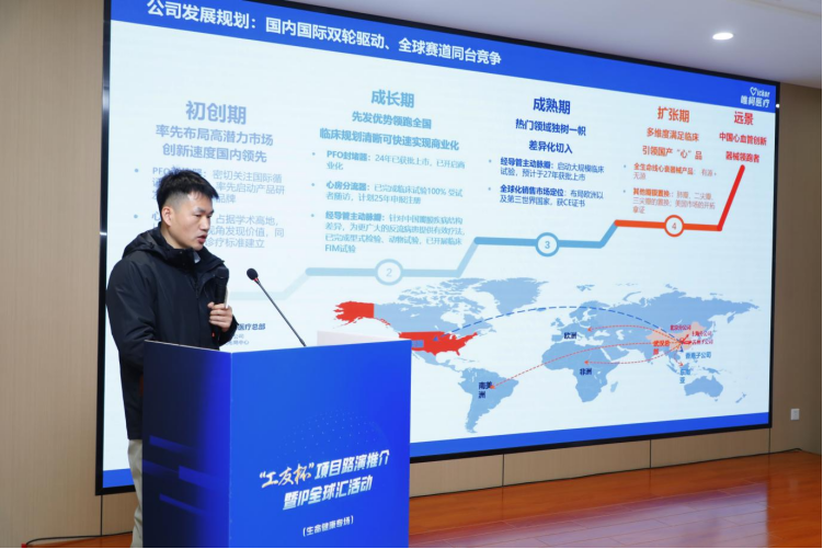 “我们的D-shant心房分流器获中美双创新医疗器械认证,DOCS VALVE®全球唯一与外科瓣对照的全国多中心临床试验已接近尾声,手术成功率100%。项目成功攻克复杂病例植入难题,相关技术指标达到国际先进水平。”武汉唯柯医疗科技有限公司研发副总监明廷伯详细介绍“经导管主动脉瓣膜置换系统”核心技术、发展模式、融资需求。