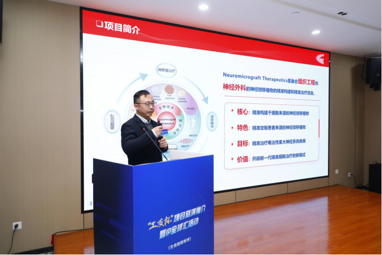 活动现场,“经导管主动脉瓣膜置换系统”“Sigma-1受体神经痛新药研究”“基于工程化神经微移植物的精准神经再生治疗”“可降解靶向纳米脂质体mRNA递送系统的研发与产业化”“肝影智卫——基于临床大数据的肝脏肿瘤影像精准评估与全周期管理平台”等5个来自“工友杯”第七届职工创业创新大赛生命健康领域的参赛项目进行路演推介,涵盖了医疗器械、创新药物、细胞治疗、基因递送、智能诊断等行业前沿方向。