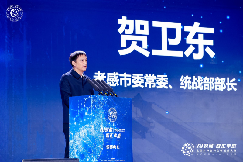 孝感市委常委、统战部部长贺卫东致辞表示,在生物医药领域,孝感正全力打造从基础研究到成果转化的全链条创新生态。当前, AI与药物研发深度融合,让药物研发从“大海捞针”变为“精准导航”。孝感把握这一时代机遇,携手上海思朗科技、新华网共同发起本次大赛,旨在搭建一个汇聚智慧、链接资源、共创未来的高水平平台。相信在赛事中获奖的创新创业项目必将为孝感乃至全国的生物医药发展注入新的动能。
