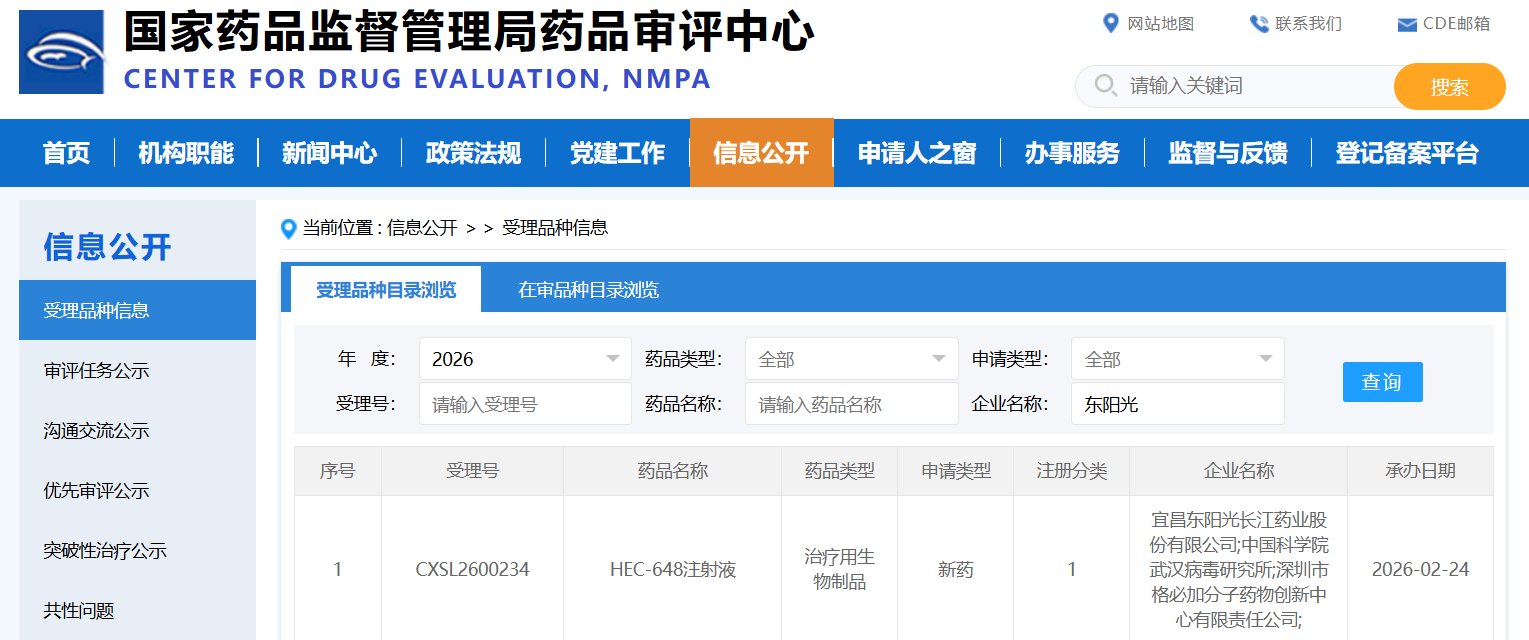 热烈祝贺湖北省药品MAH转化联盟会员企业——宜昌东阳光长江药业股份有限公司提交的靶向尼 帕病毒G蛋白的单克隆抗体新药临床试验申请,正式被国家药品监督管理局受理